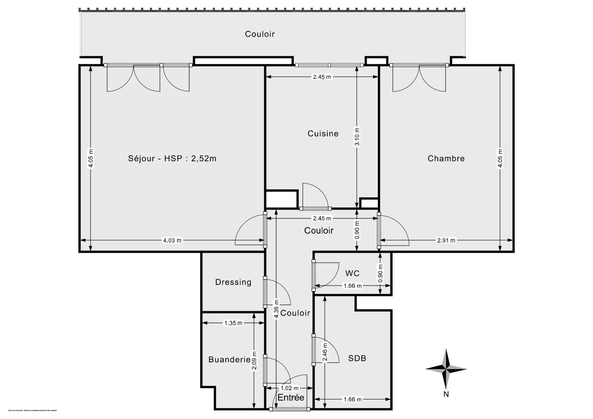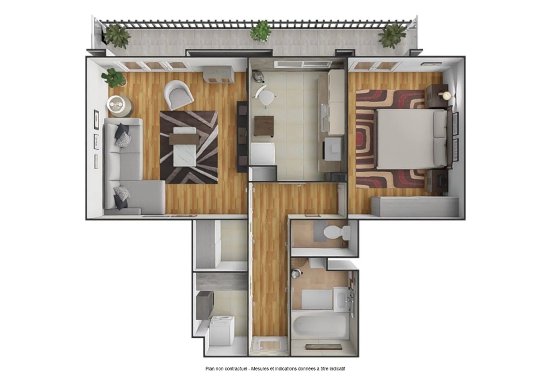 Ce logement comprend : une entrée, un séjour, une cuisine, une chambre, un débarras, une salle de bains, un W.C indépendant, balcon.